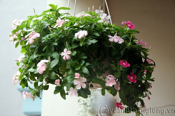 Hoa dừa cạn có cánh đơn, mỏng. Có nhiều mầu sắc khác nhau như như: hồng, trắng, đỏ, tím. Thích hợp để trồng bồn, trồng chậu hoặc giỏ treo.