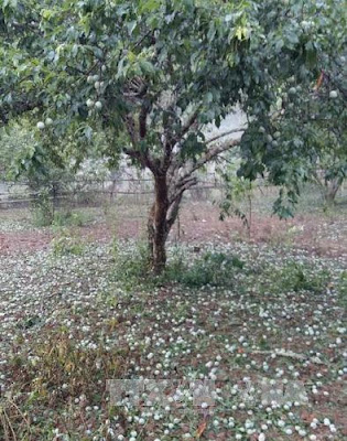 Hiện trường mưa đá làm rụng mận hậu ở Phiêng Khoài.